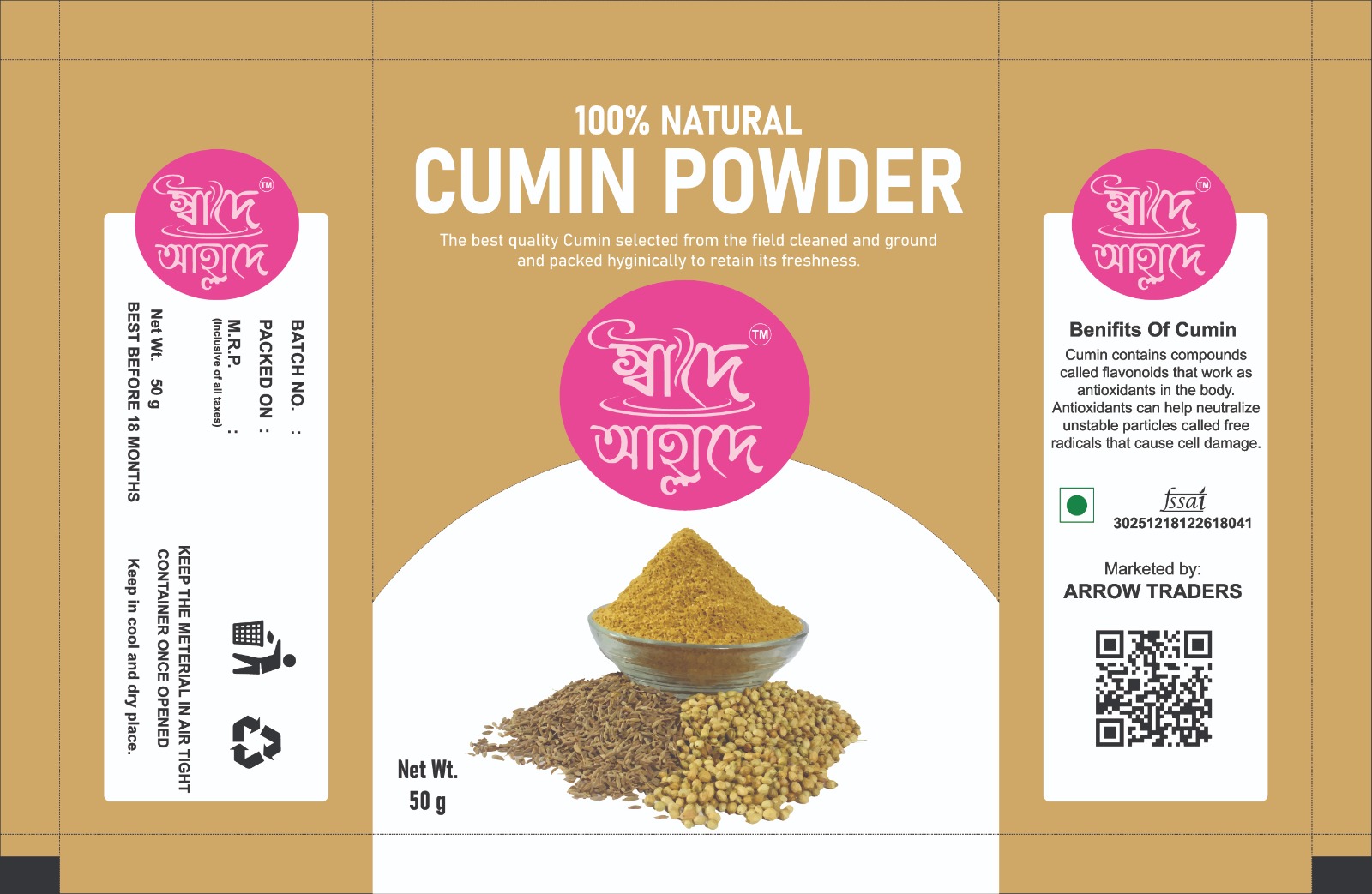 Cumin powder is the ground form of dried cumin seeds, adding a warm, earthy, and nutty flavor to various global cuisines, especially Indian and Mexican dishes. It is known for aiding digestion.