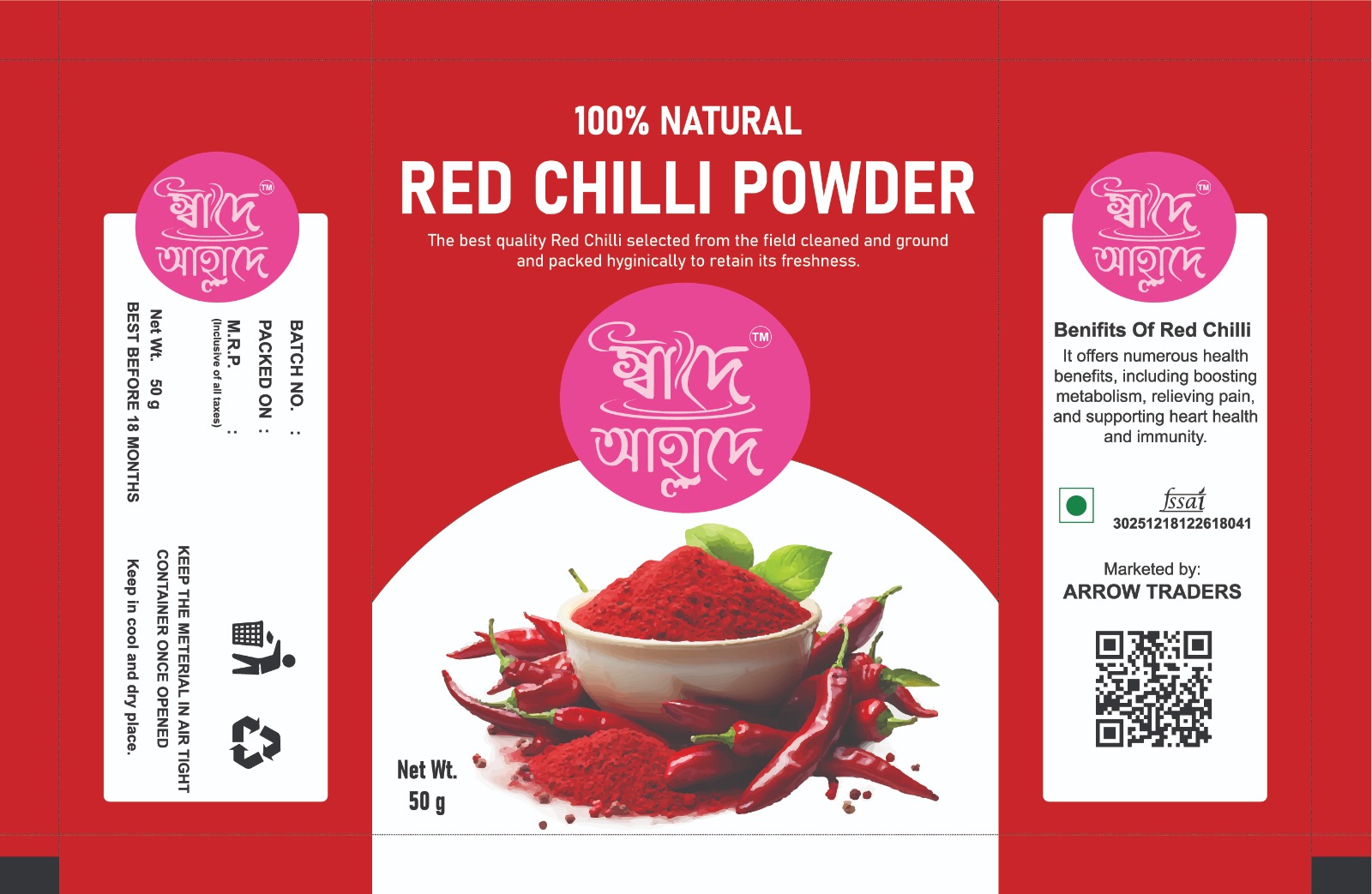 Red chili powder is a popular spice made from ground dried red chilies, used globally to add heat and vibrant color to dishes.